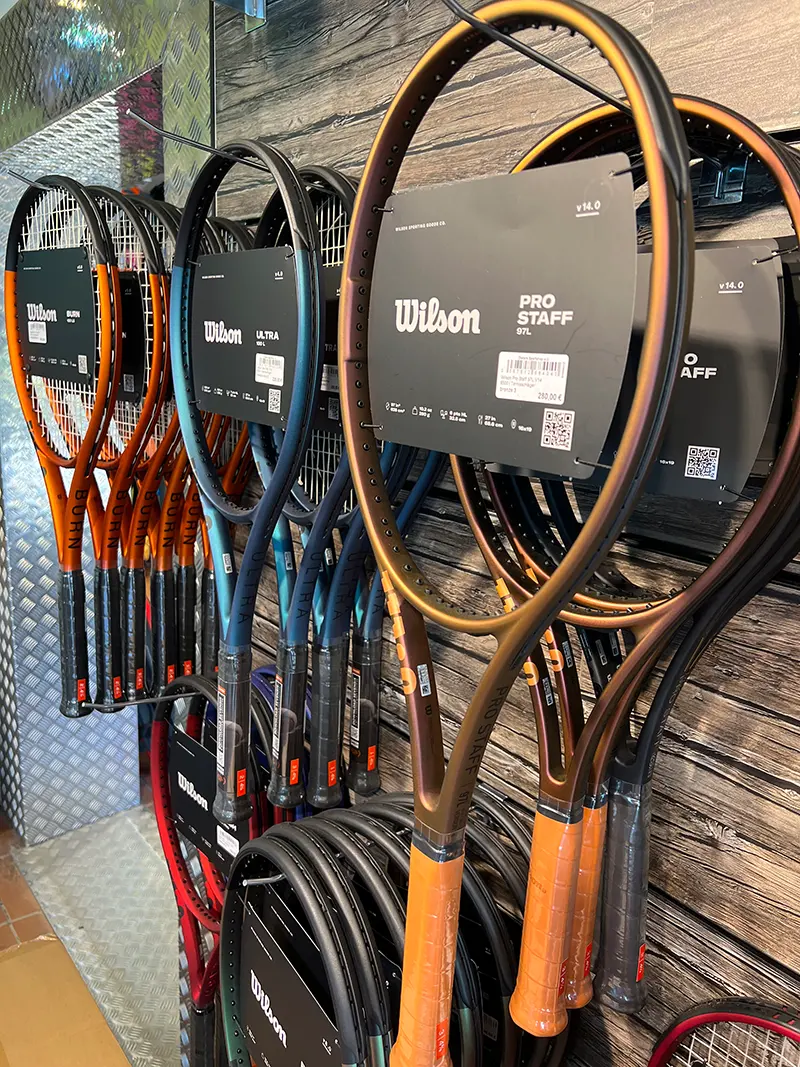 Für die Tennisspieler führen wir ein exklusives Angebot an hochwertiger Tennisbekleidung von Head, Wilson und Craft. Wir haben eine große Auswahl an Tennisschlägern von Wilson und Head, sowie Tennisschuhe von Head und Wilson, Tennisaccessoires wie Griffbänder, Tennissaiten, Dämpfer, Armbänder und Schildmützen.